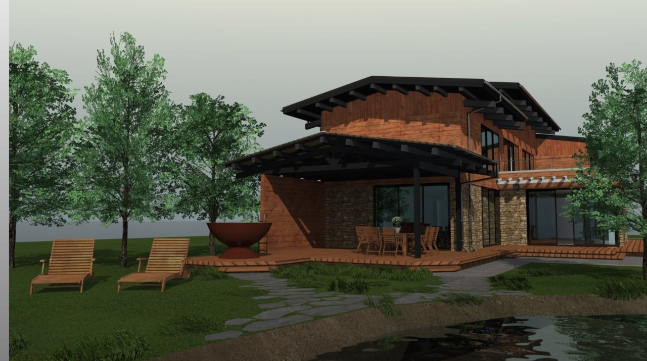 На момент принятия данного объекта в работу, на строительной площадке был выполнен уже монолитный железобетонный каркас, в состав которого входило: фундамент, цокольный этаж, перекрытие, расположено на отдельно стоящих колонах. Нашему проектному бюро была поставлена задача от заказчика адаптировать данный объект под техническое задание от дизайнера с проработкой конструктивной и архитектурной части. Сам по себе объект сложной формы. Двух этажный, где второй этаж был выполнен в виде мансардного, а также цокольным этажом, где располагалось всё технологическое оборудование и инженерные коммуникации. Первый и второй этаж предназначались под Спа зону, зону отдыха, помещение для обслуж. персонала. На втором этаже также была выполнена терраса открытого типа. В виде ограждающей конструкции были применены керамические блоки толщиной 400 мм. Внутренние перегородки разделяющие помещения также были выполнены из керам. блока толщиной 150 мм. Заполнение оконных проемов предусмотрены в виде панорамных, витражных, раздвижных систем. Перекрытие и одновременно покрытие второго этажа предусмотрено в виде деревянных ферм шпренгельной системы, с сечением бруса 200Х300(h). Кровля двускатная, сделана на 3- уровнях, так как здание сложной формы, не прямоугольной и центральная часть выступающая. Материал кровли: мягкая черепица. Также возле спа комплекса в торце здания предусмотрена летняя кухня. Выполнена из деревянного каркаса и перекрыта деревянными фермами, аналогичными как на Спа комплексе.